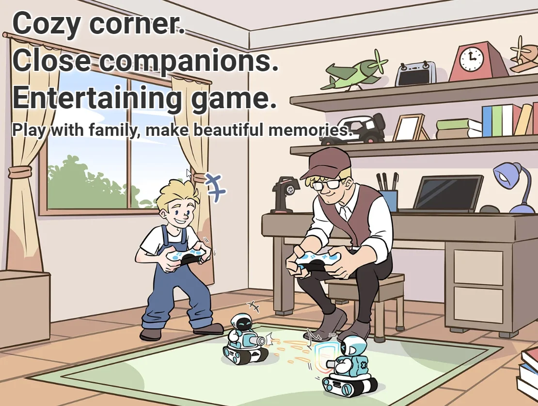 You can fight alongside Eilik, controlling Panxer to engage in an intense tank battle with family and friends, or challenge Eilik to a duel, picking up the controller to launch a fierce attack on Panxer driver Eilik.