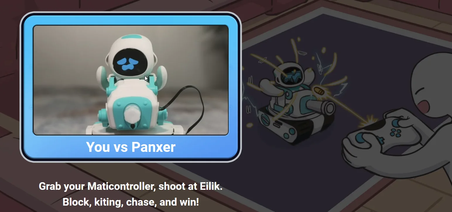 Panxer is the ultimate ride designed by Maticauo specifically for Eilik. Not only provides Eilik with responsive controls and precise shooting experiences but also features a complete battle game system. With rich sound effects, animations, and interactive experiences, it creates an immersive battle atmosphere for players.